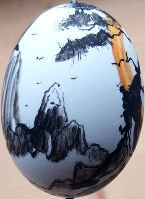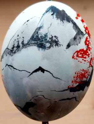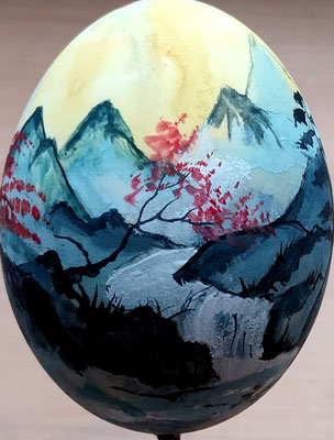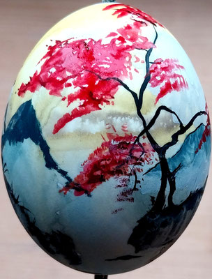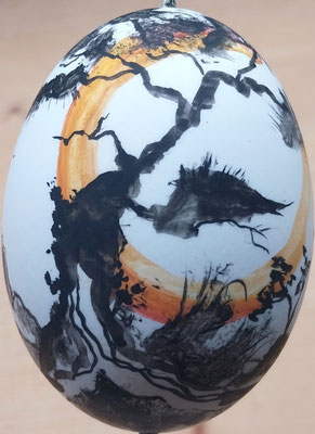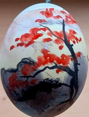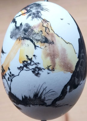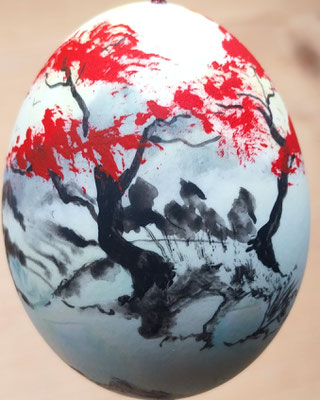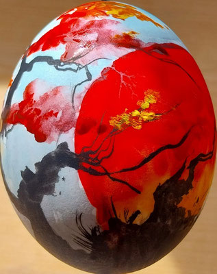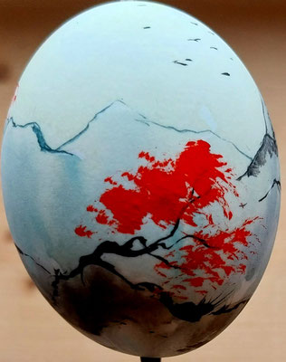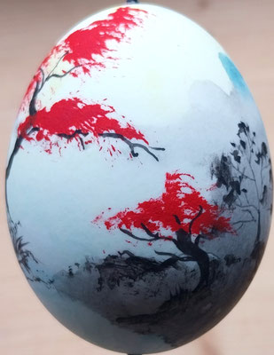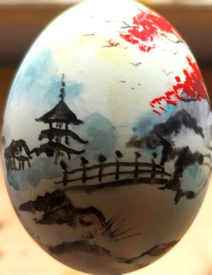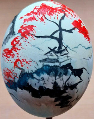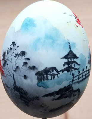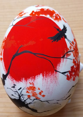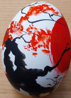 Holzschnitte von bekannten japanischen Malern bilden in abgewandelter und auf die Eier angepasste Form die Vorlage