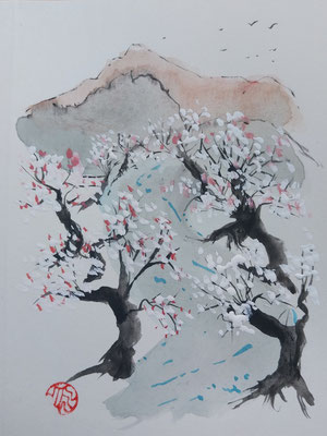 Tuschmalerei, Aquarellmalerei, Drucke, Washibögen